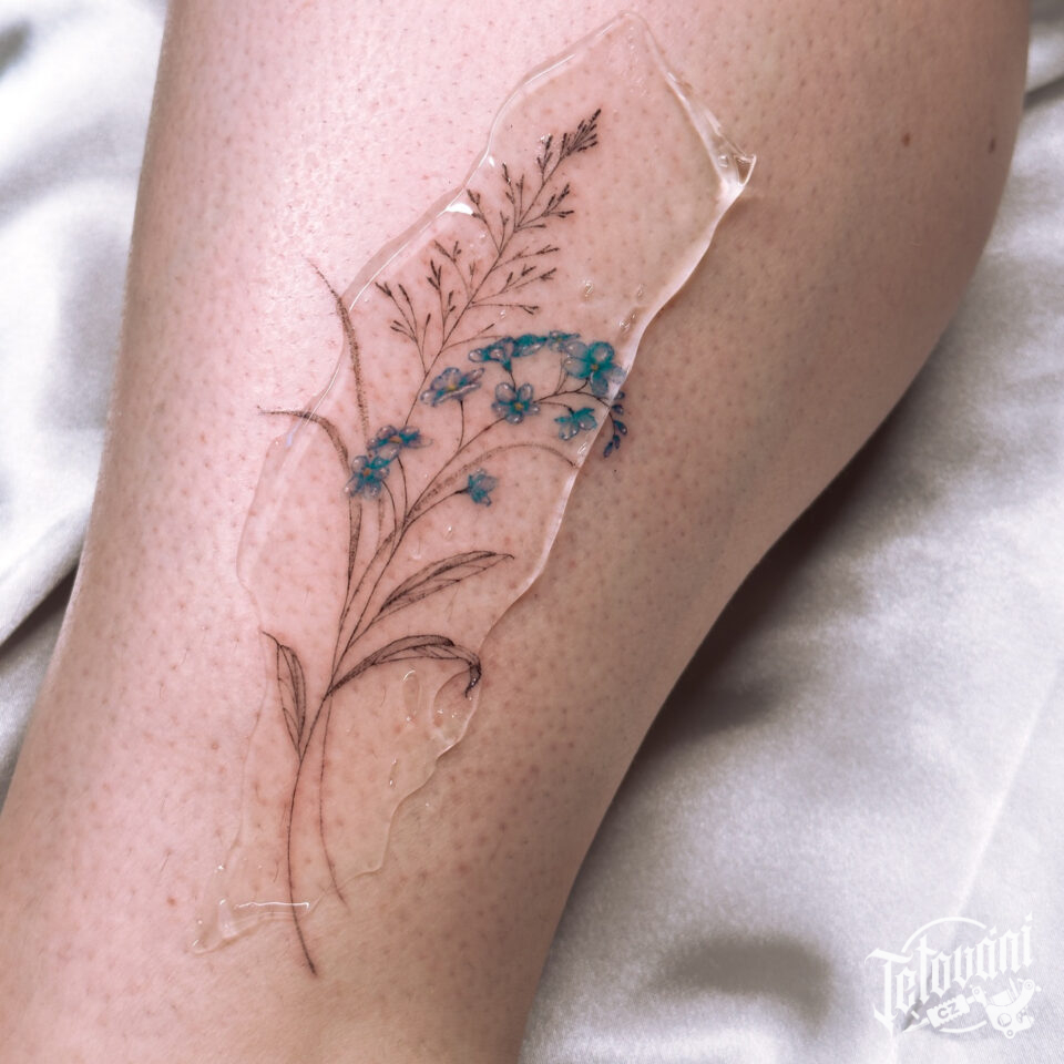 Tetování květiny, luční kvítí na noze