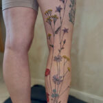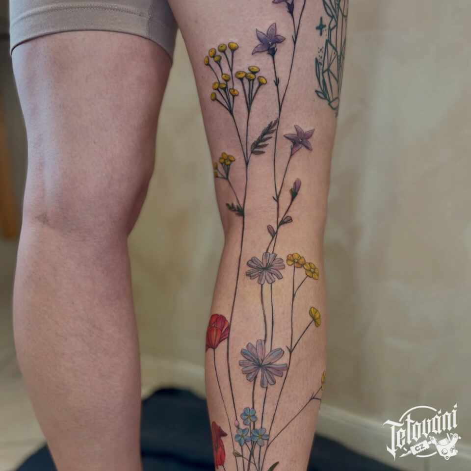 tetování květiny, luční kvítí na noze