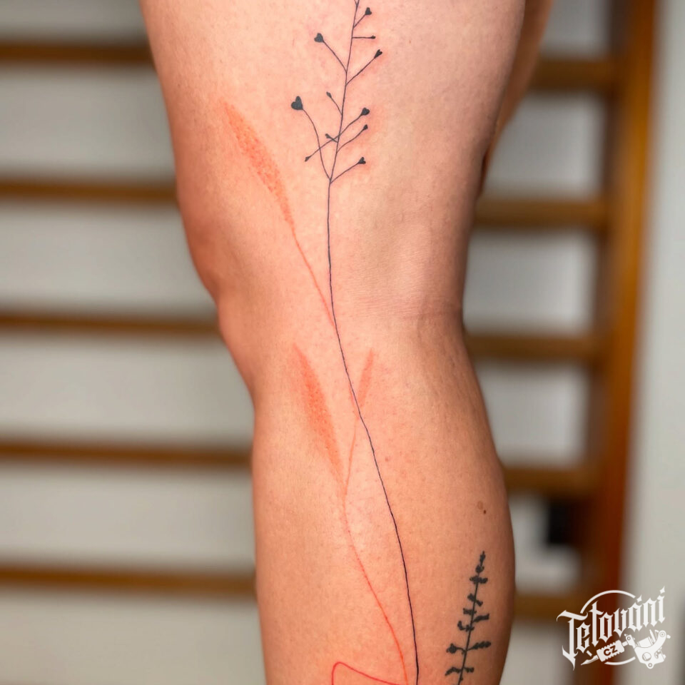 Tetování květiny, luční kvítí na noze