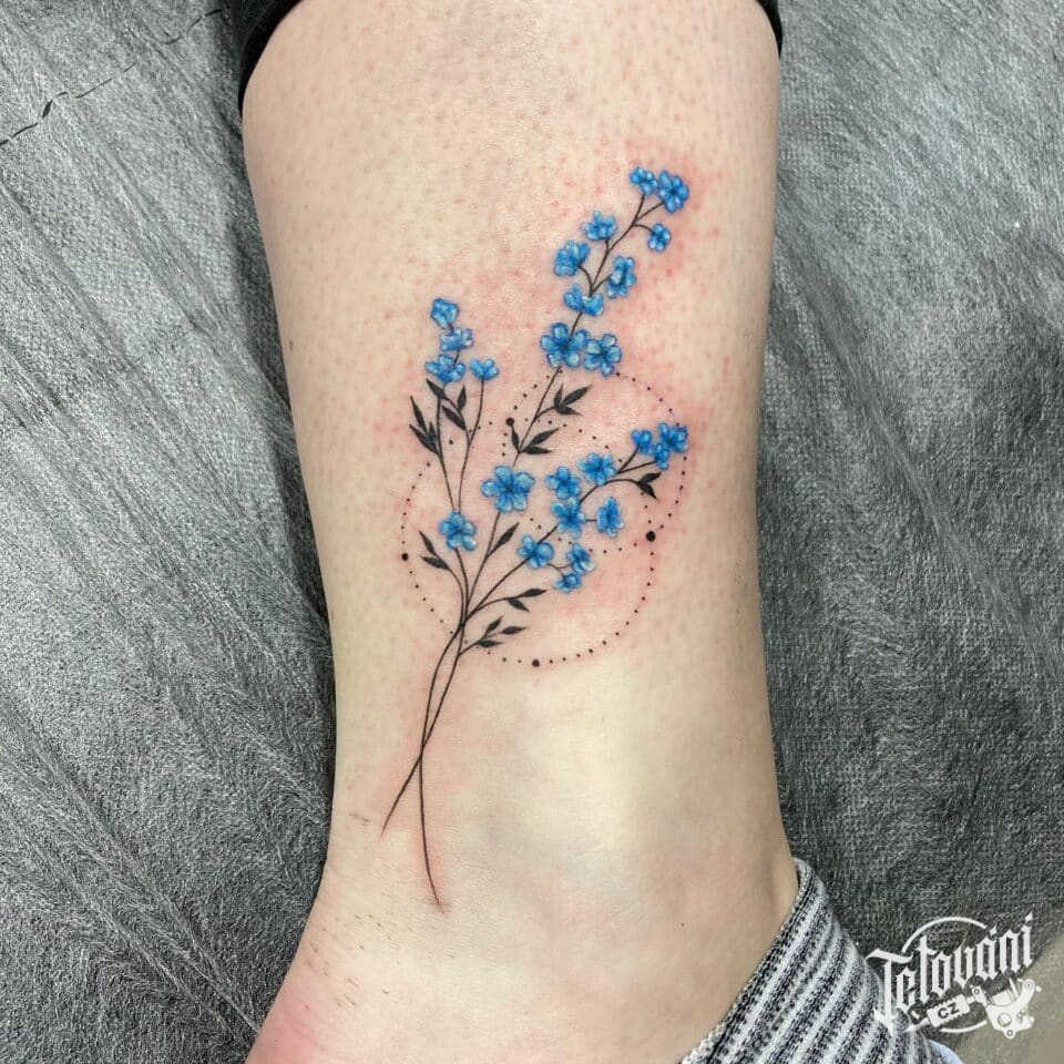 Tetování květiny, luční kvítí na noze