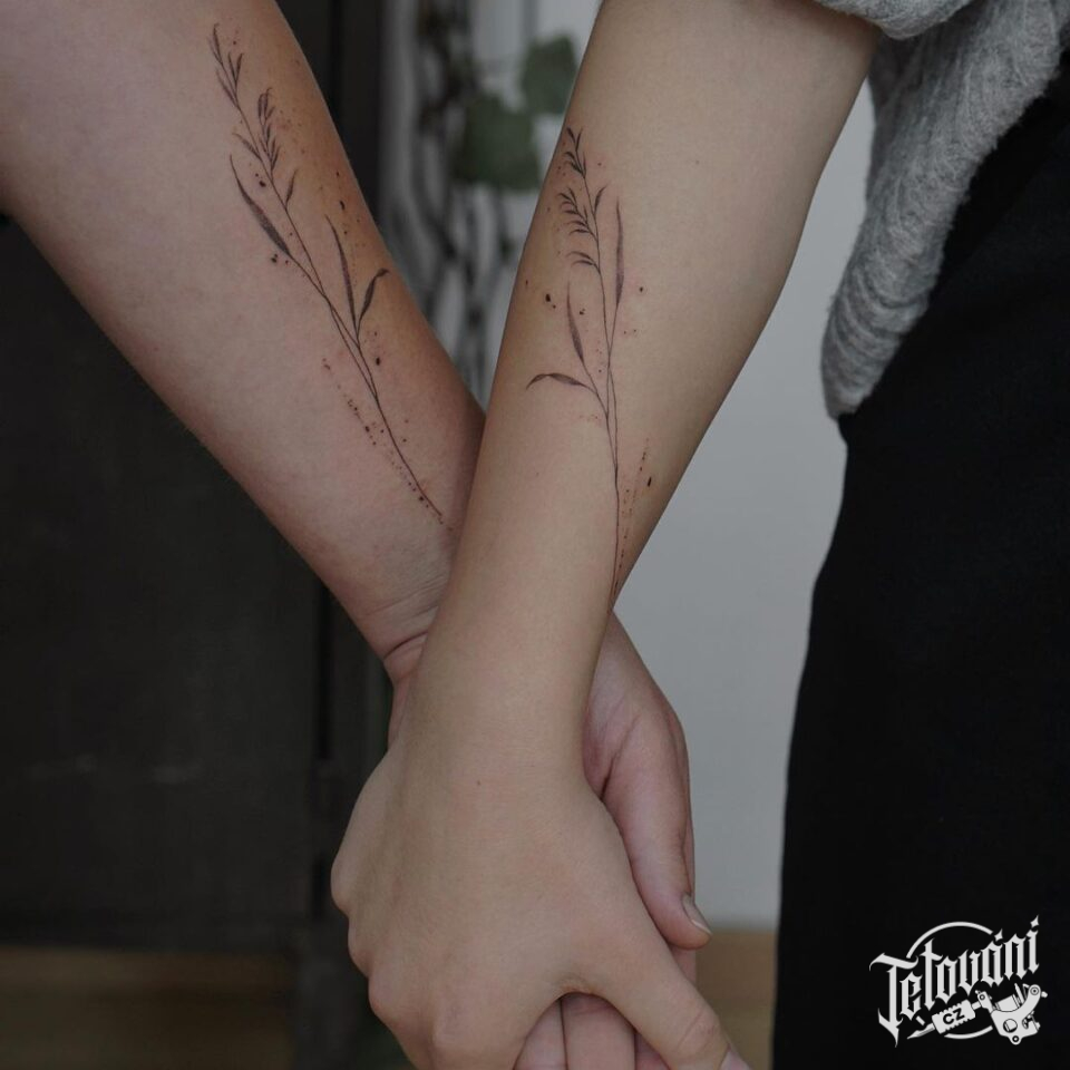 Společná tetování květin, luční kvítí na předloktí