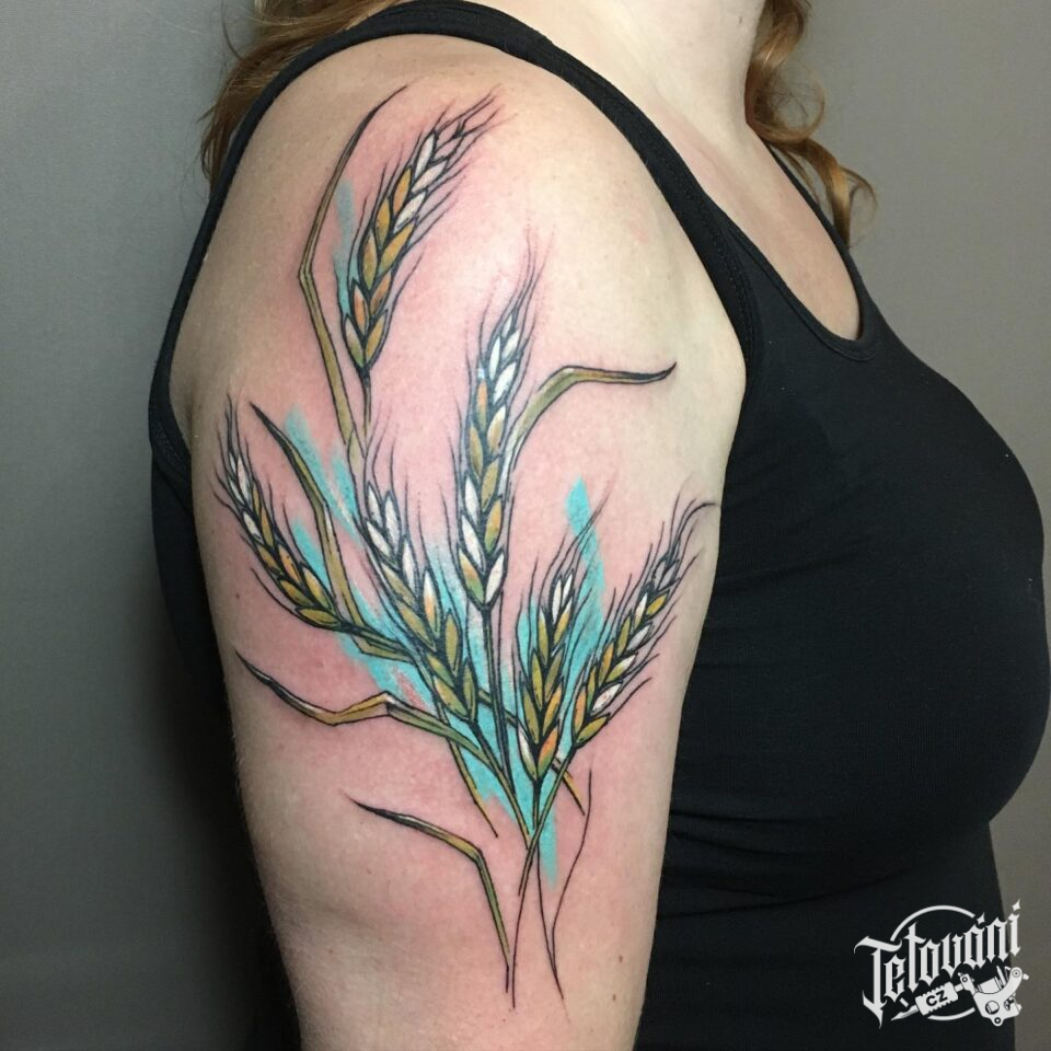 Tetování květiny, luční kvítí na rameno