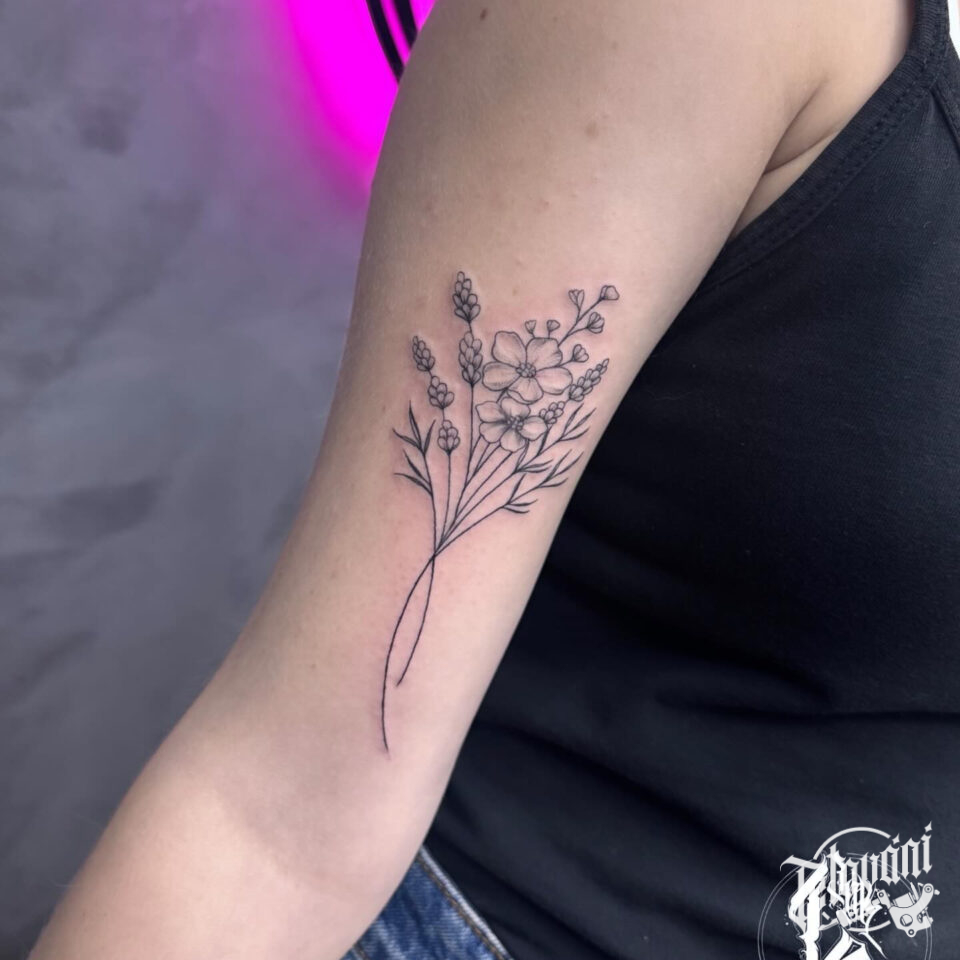 Tetování květiny, luční kvítí na ruce