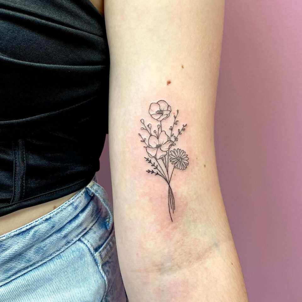 Tetování květiny, luční kvítí na ruce
