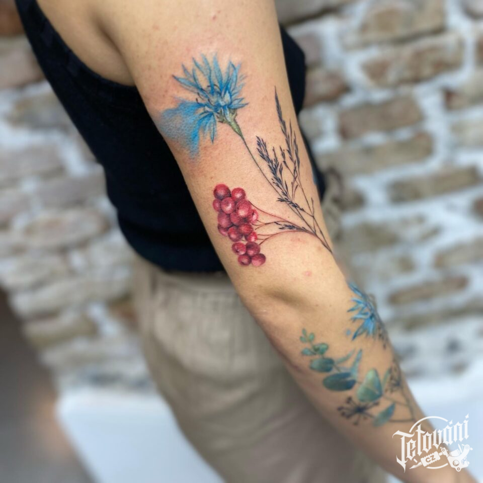 Tetování květiny, luční kvítí na ruce