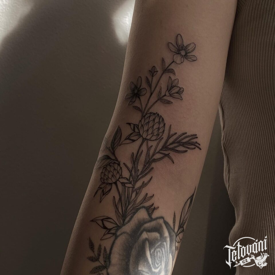 Tetování květiny, luční kvítí na ruce