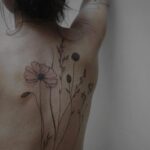 Tetování květiny, luční kvítí, vlčí mák na zádech