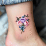 Tetování květiny, malé růže na kotníku