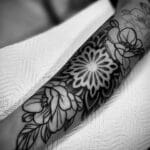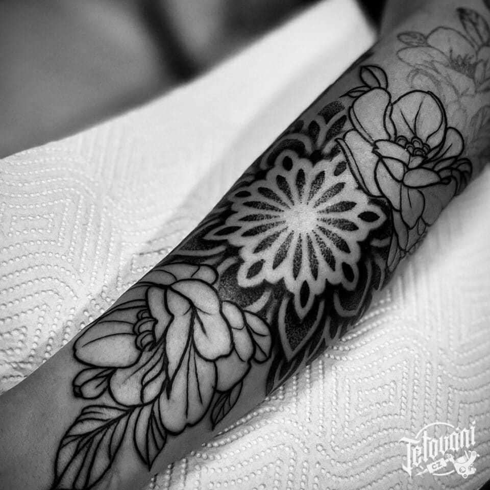 Tetování květiny, mandala na předloktí