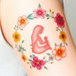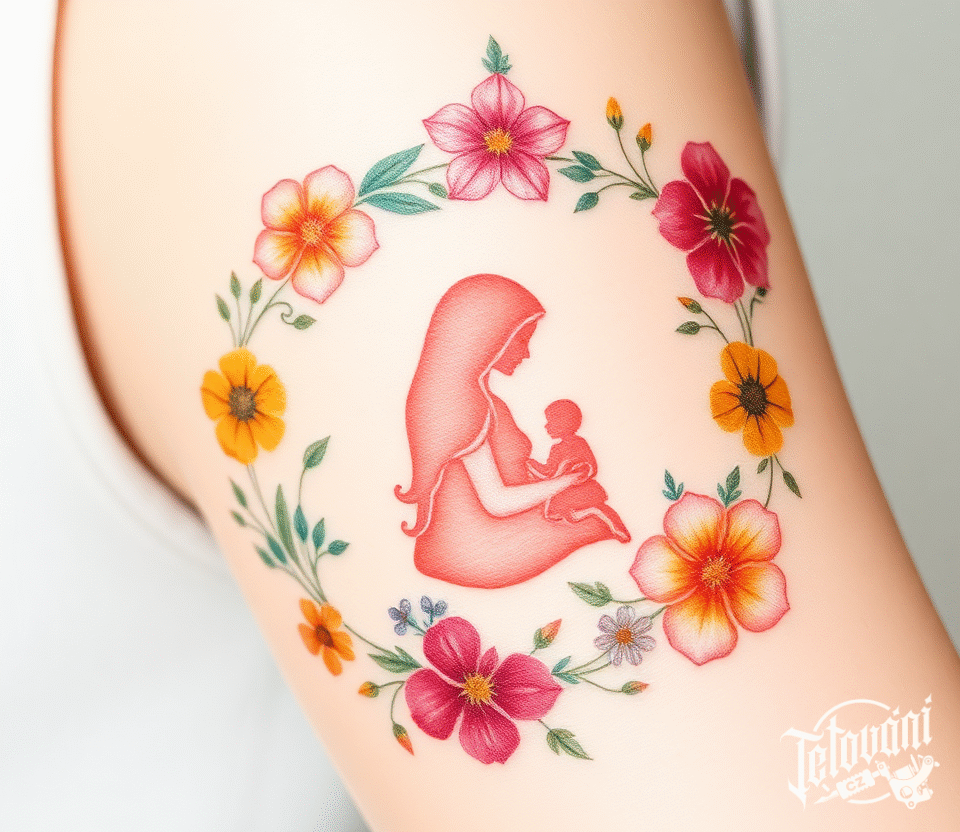 Tetování květiny, matka a dítě na bok stehna