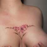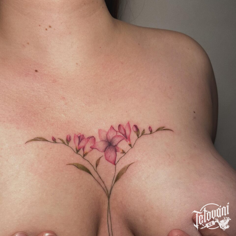 Tetování květiny mezi prsa