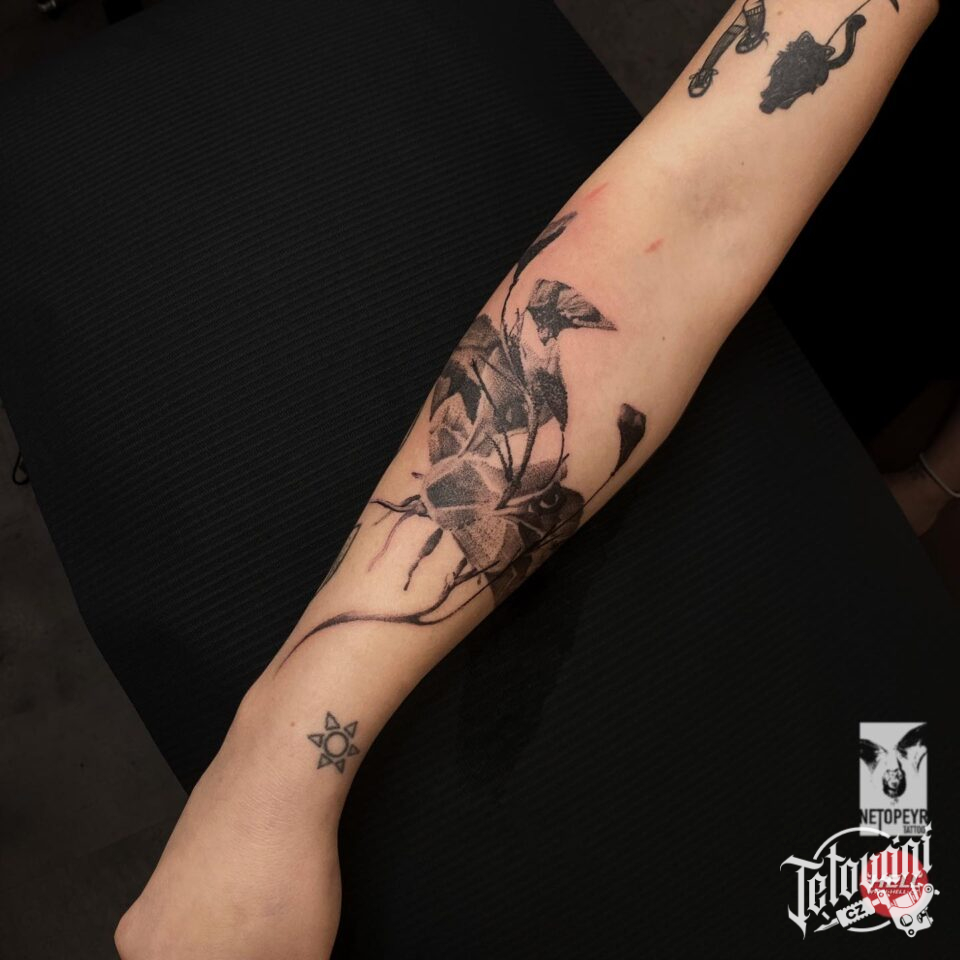 Tetování květiny, můra, zvíře na předloktí