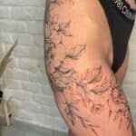 Tetování květiny na bok, bok stehna, stehno