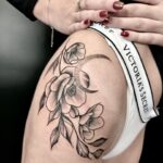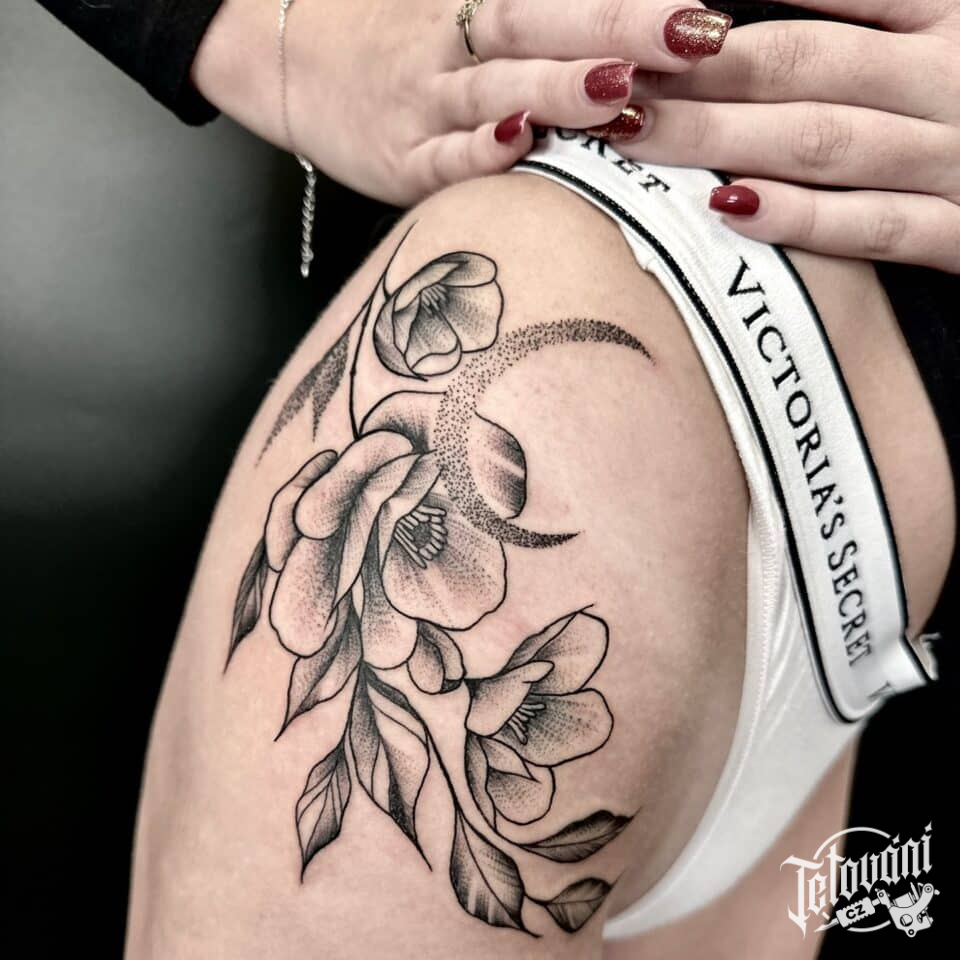 Tetování květiny na bok stehna
