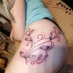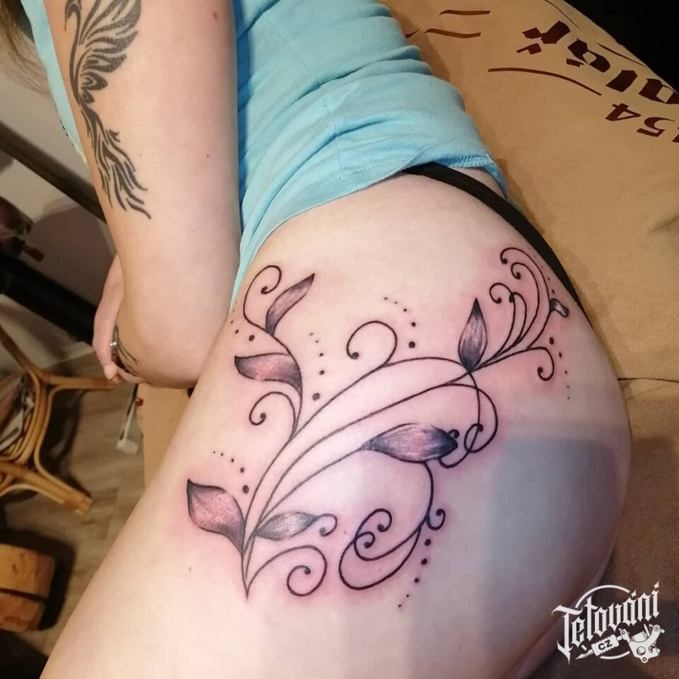 Tetování květiny na bok stehna