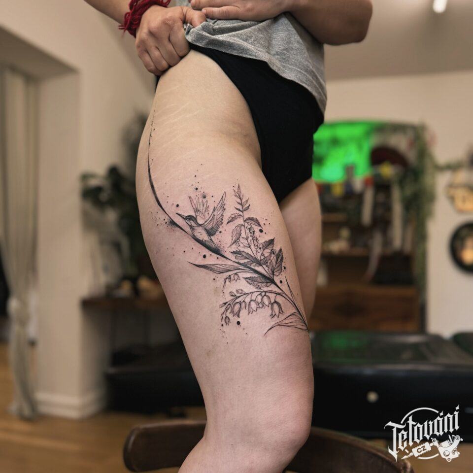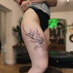 Tetování květiny na bok stehna