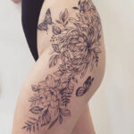 Tetování květiny na bok stehna