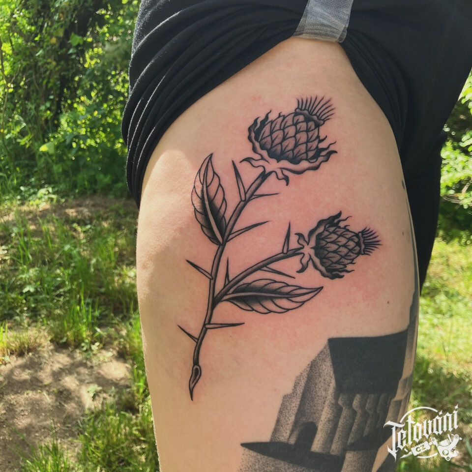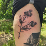 Tetování květiny na bok stehna