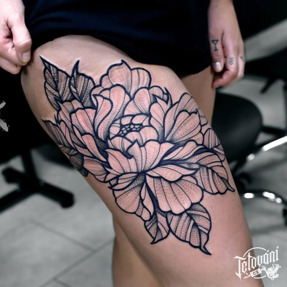 Tetování květiny na bok stehna
