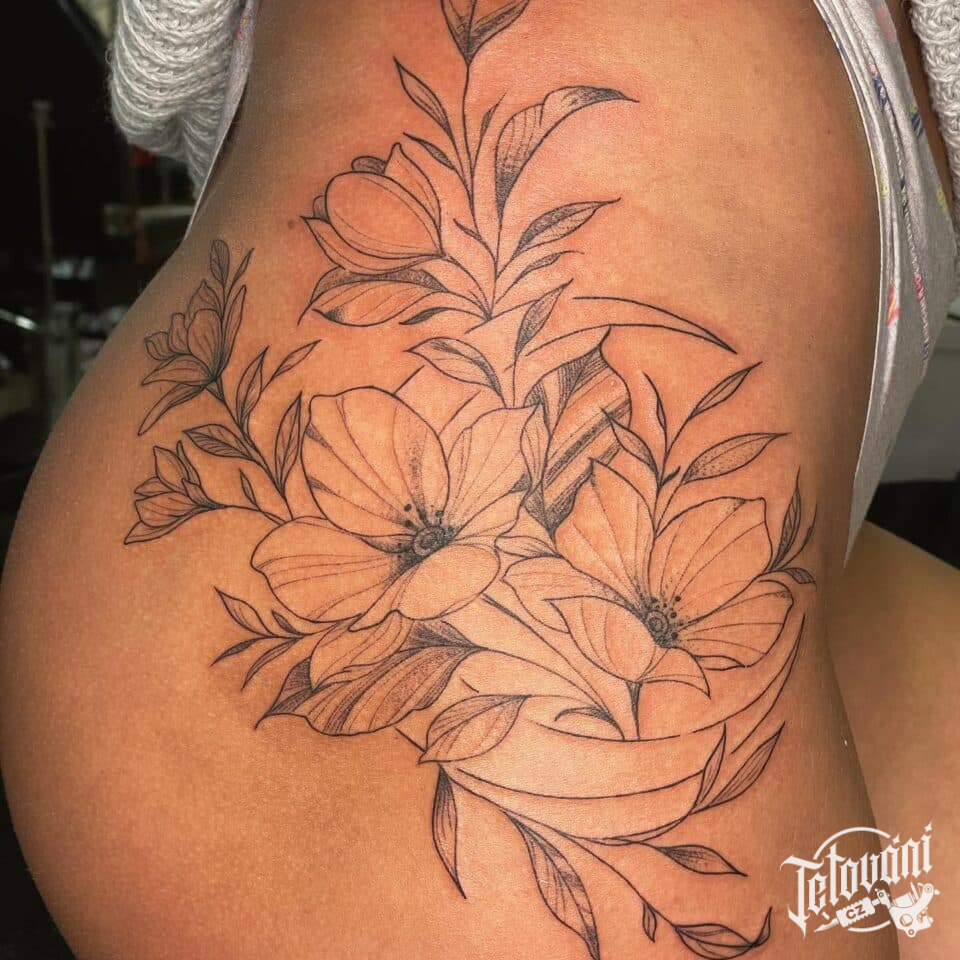 Tetování květiny na boku
