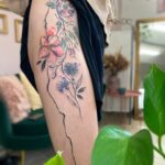 Tetování květiny na boku stehna