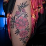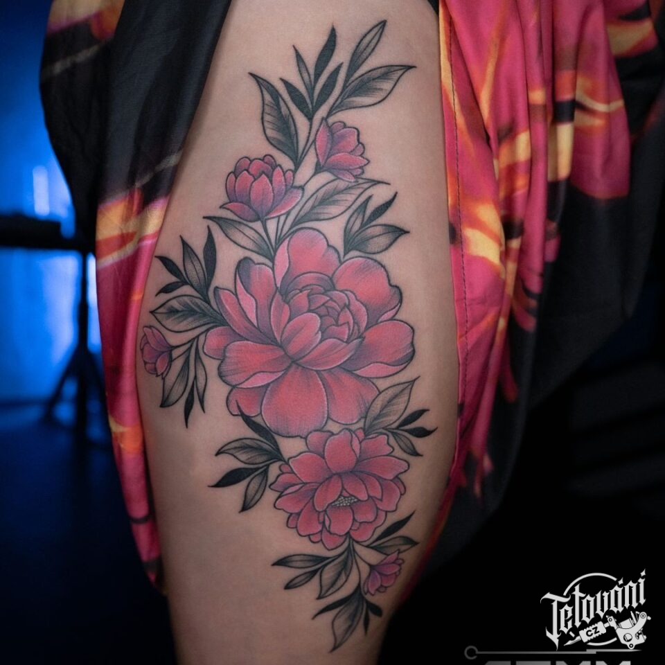 Tetování květiny na boku stehna