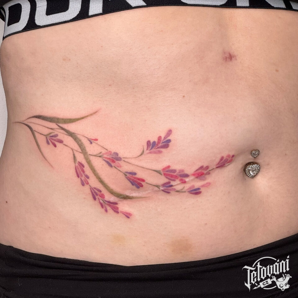 Tetování květiny na břichu