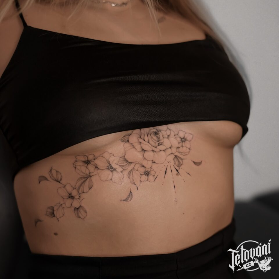 Tetování květiny na břichu