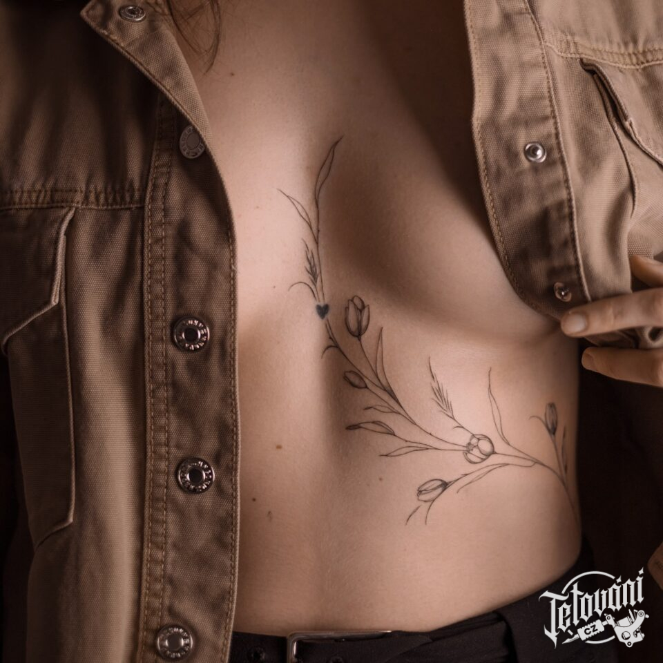 Tetování květiny na břichu