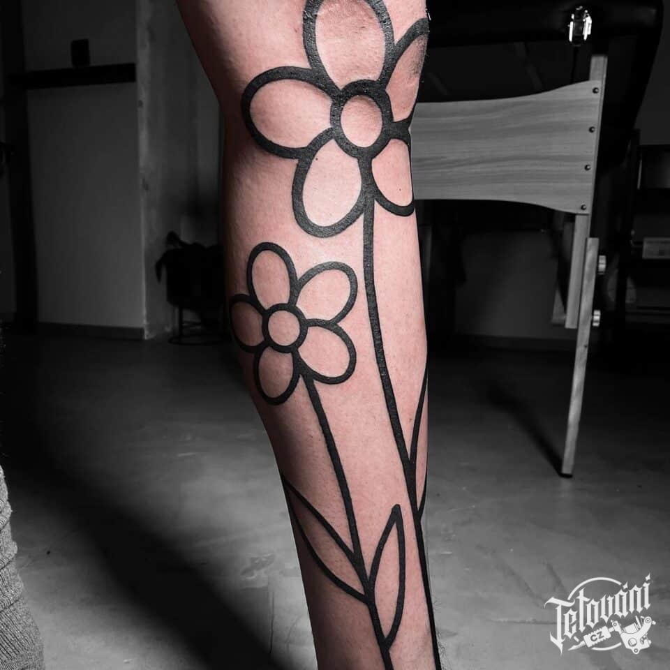 Tetování květiny na holeň
