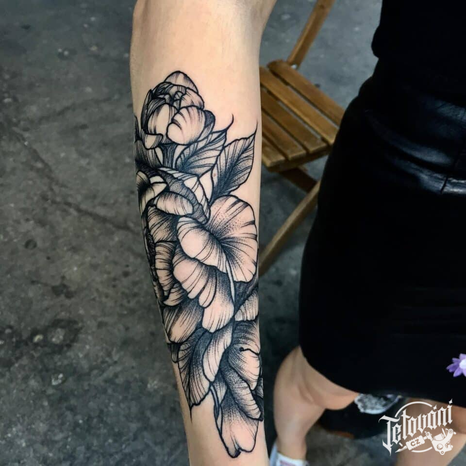 Tetování květiny na předloktí