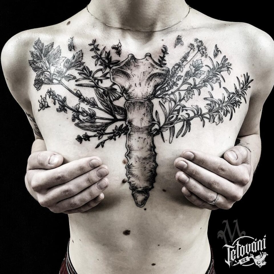 Tetování květiny na hrudi