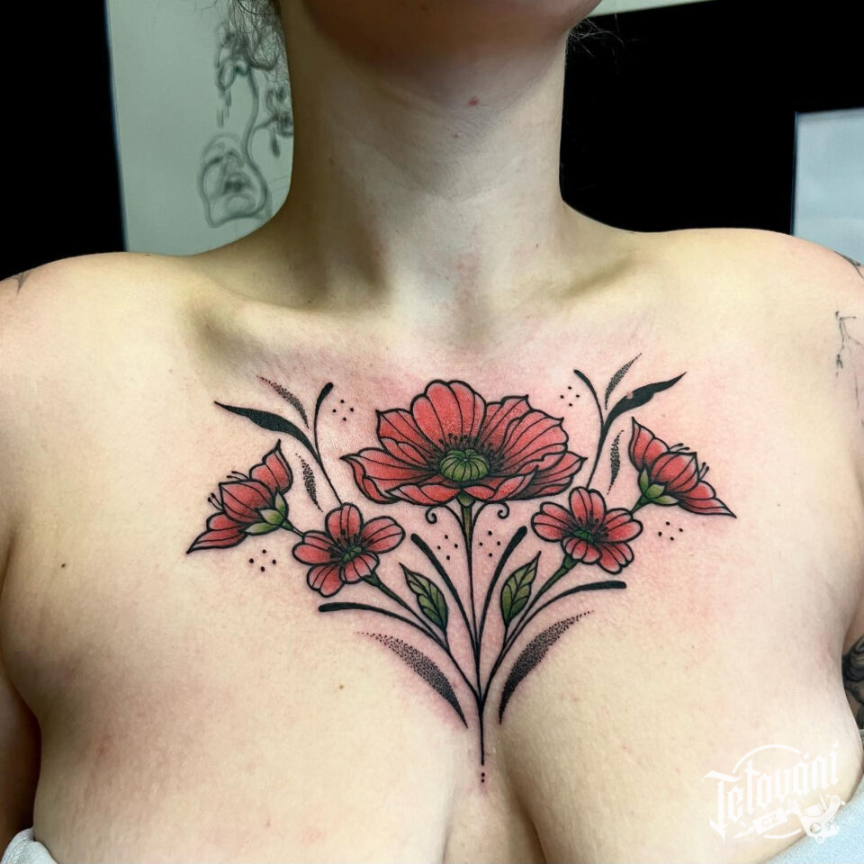 Tetování květiny na hrudník