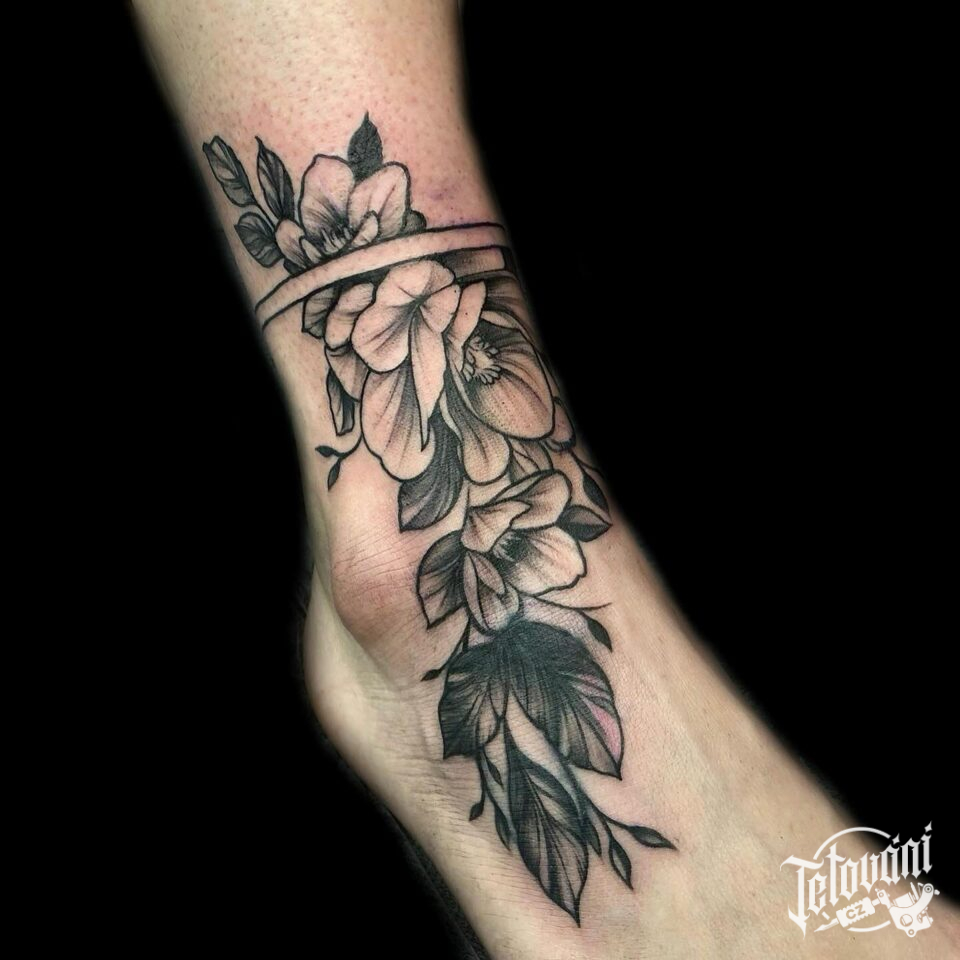 Tetování květiny na kotníku