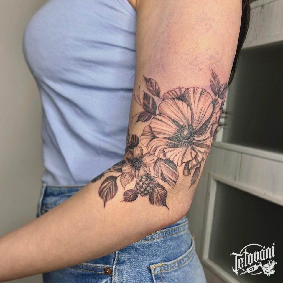 Tetování květiny na loket