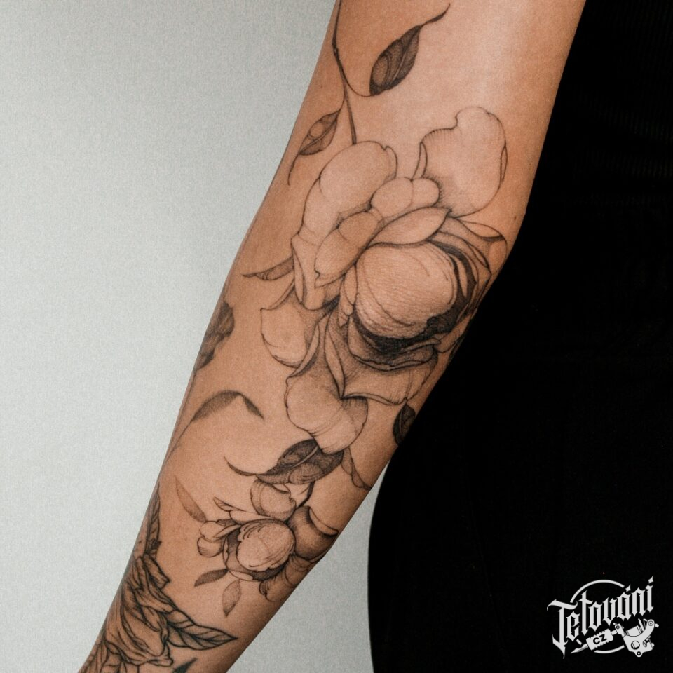 Tetování květiny na loke...