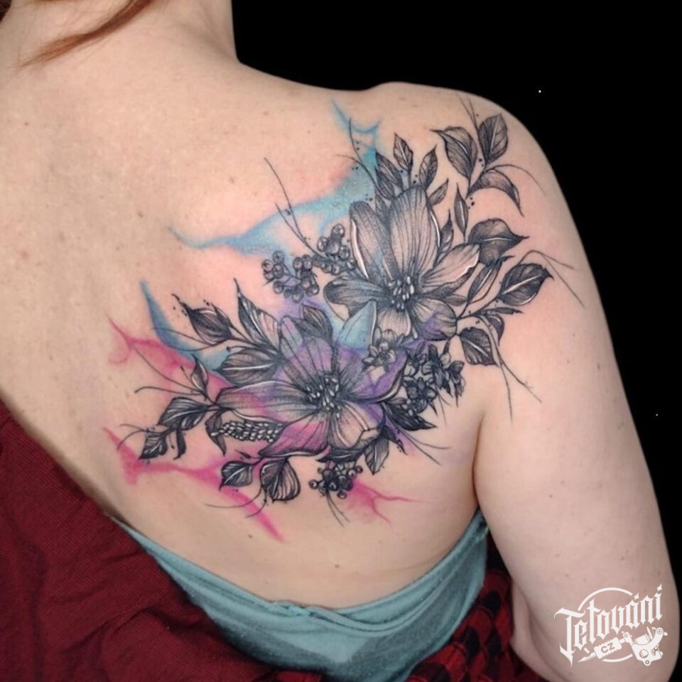 Tetování květiny na lopatce