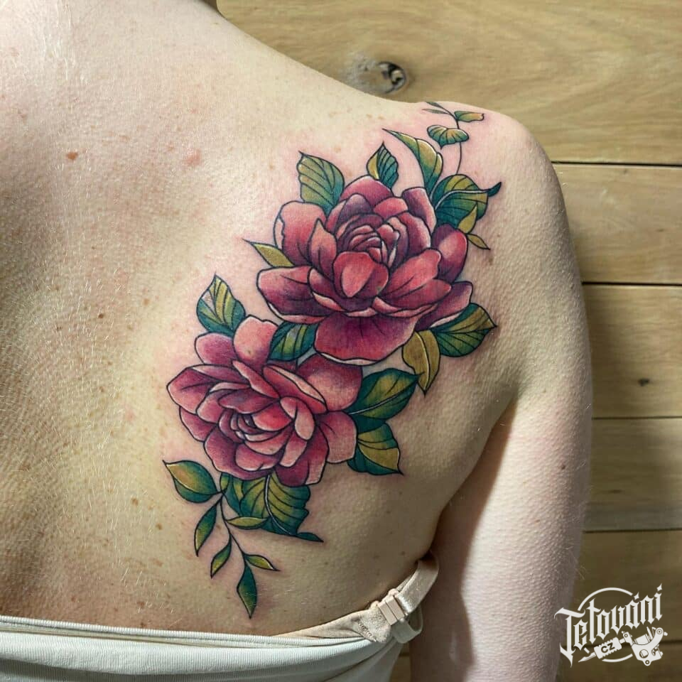 Tetování květiny na lopatce