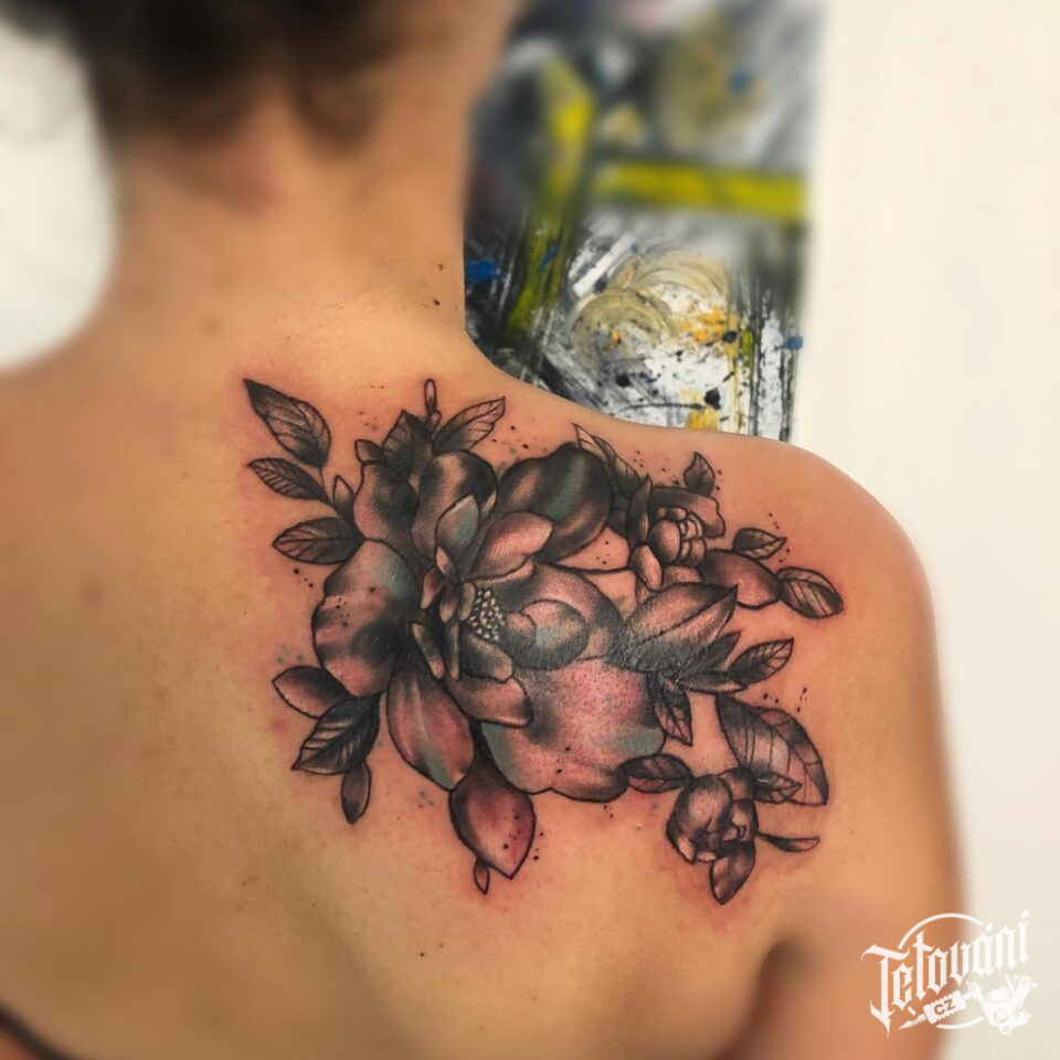 Tetování květiny na lopatku