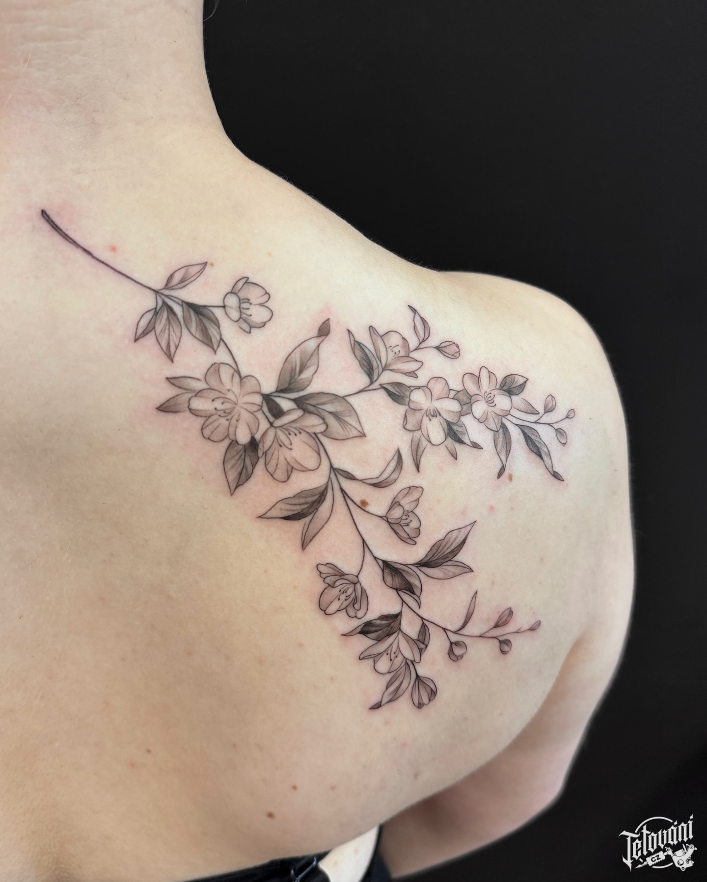 Tetování květiny na lopatku
