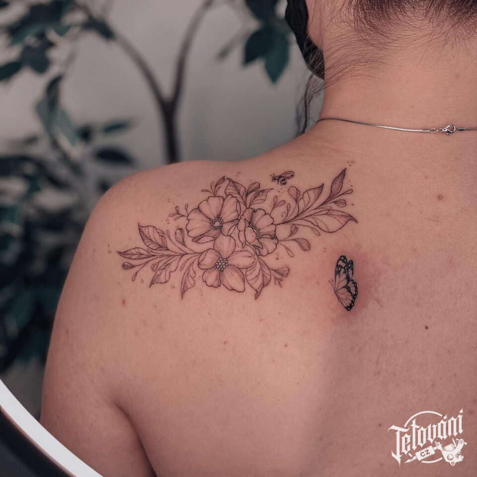 Tetování květiny na lopatku