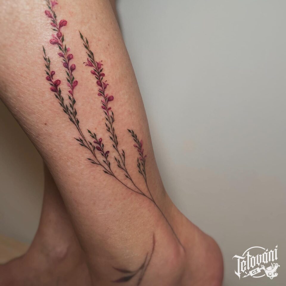 Tetování květiny na lýtko