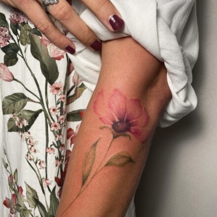 Tetování květiny na lýtko