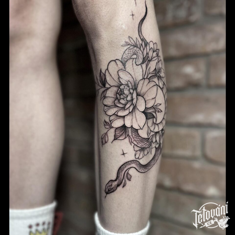 Tetování květiny na lýtko