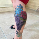 Tetování květiny na lýtko