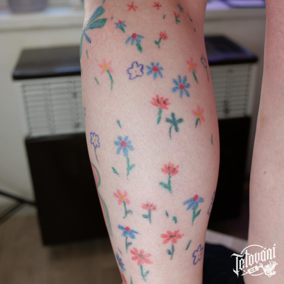 Tetování květiny na lýtko