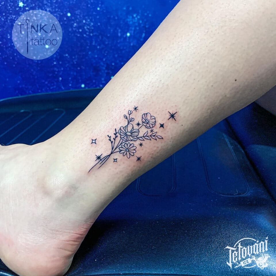 Tetování květiny na lýtko