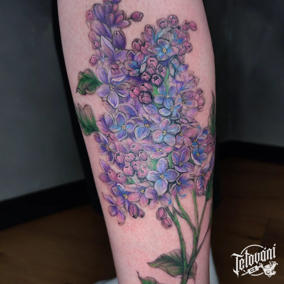 Tetování květiny na lýtko
