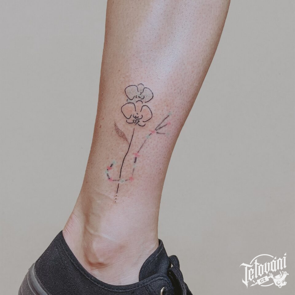 Tetování květiny na lýtko