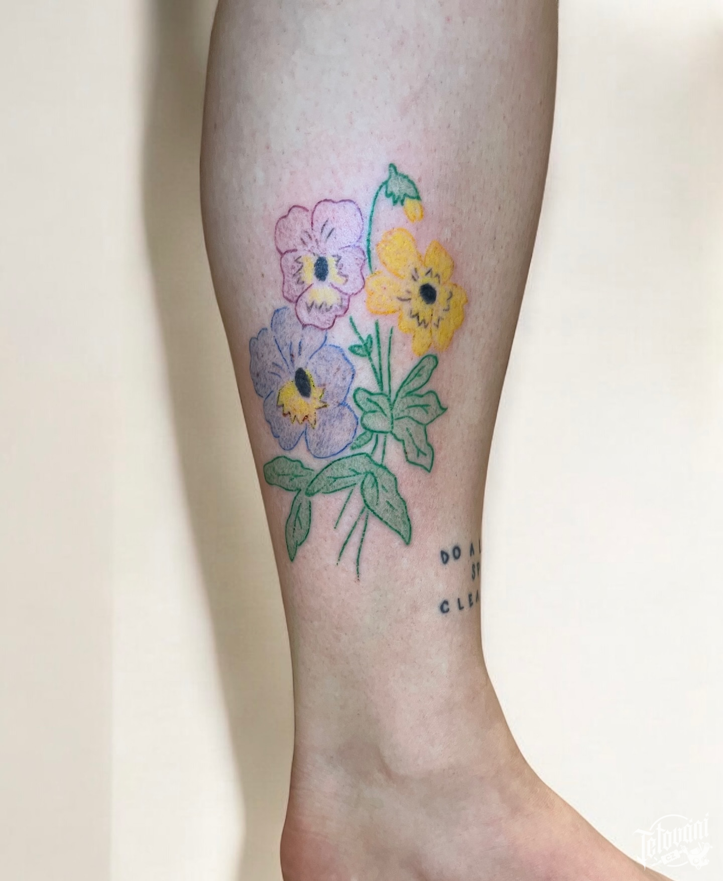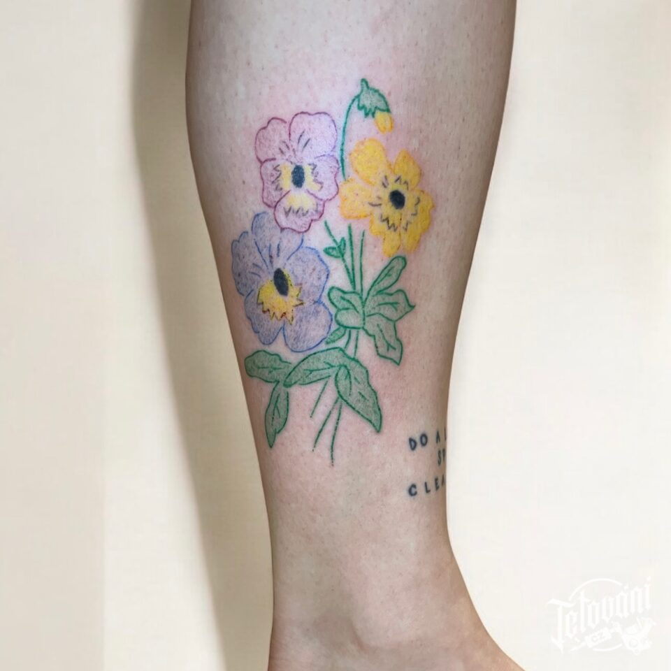 Tetování květiny na lýtko